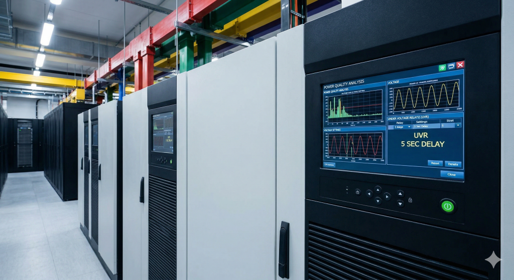 - 원인 규명: 분석 결과, 기존 UVR의 동작 시간이 너무 민감하게 설정되어 있었습니다. 과거의 기준으로는 전압이 흔들리면 즉각 발전기를 깨우는 것이 안전하다고 믿었지만, 현대의 IDC는 다중화된 대용량 UPS가 짧은 정전을 완벽히 커버합니다. 즉, 수 초 이내에 복구되는 한전의 일시적인 재폐로(Reclosing) 동작 상황에서도 발전기가 무조건 기동하는 비효율이 발생하고 있던 것입니다. 이는 발전기 엔진의 피로도를 급격히 높이고, 매연저감장치(DPF)의 필터 수명을 갉아먹는 주범이었습니다.