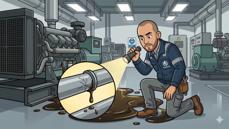 가동 중인 장비도 아닌데 오일이 새어 나오다니, 순간 등골이 서늘해졌습니다. 즉시 랜턴을 켜고 발전기 하부로 기어들어가 누유 포인트를 샅샅이 훑어보았습니다.